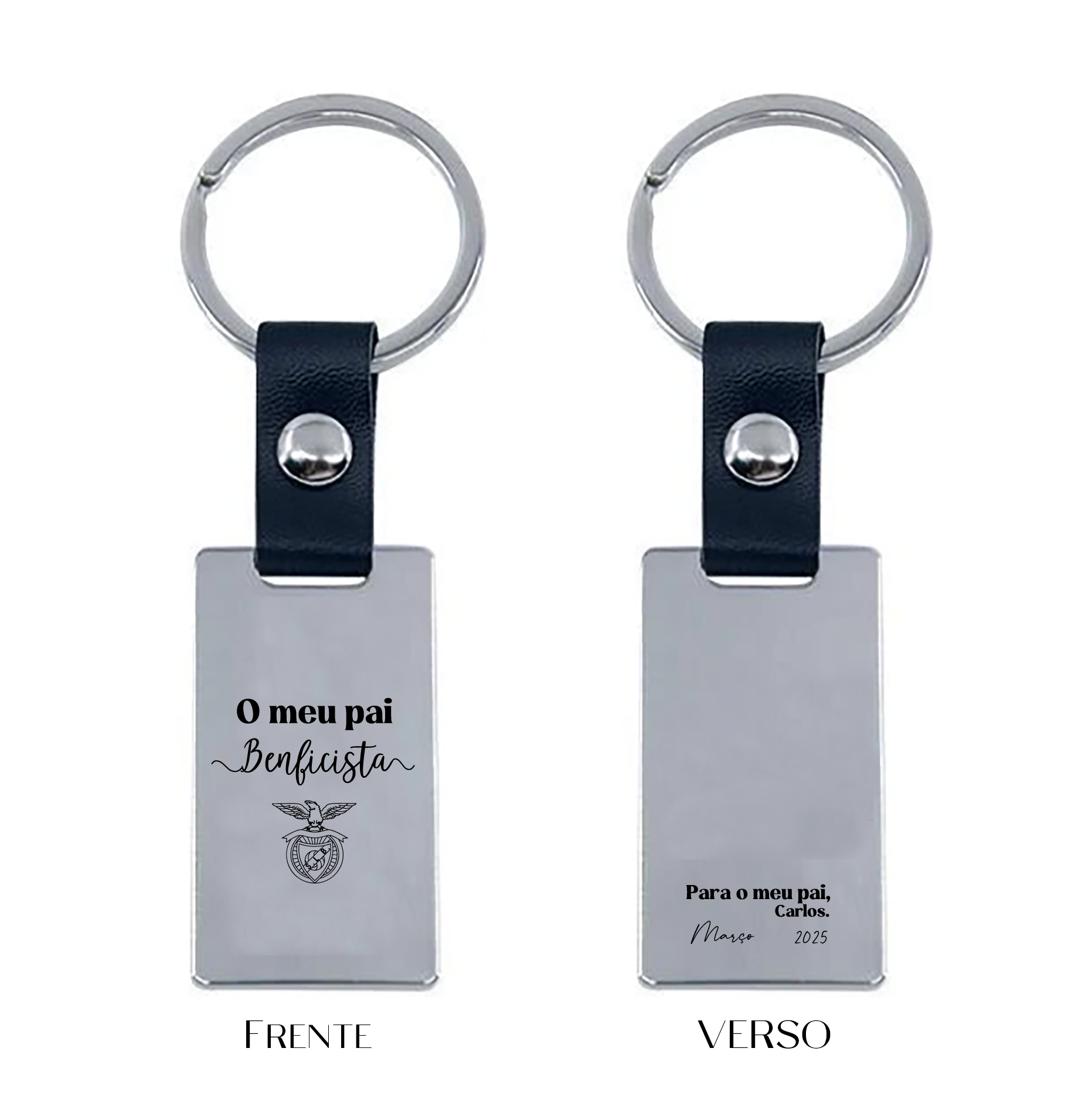 Quero ajudar-te a surpreender o teu pai com um presente cheio de significado. Imagina a emoção dele ao receber um porta-chaves que junta o nome dele à paixão pelo clube do coração.
