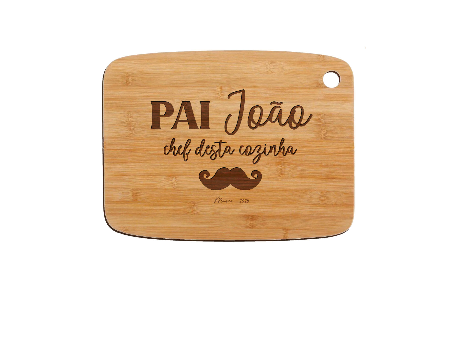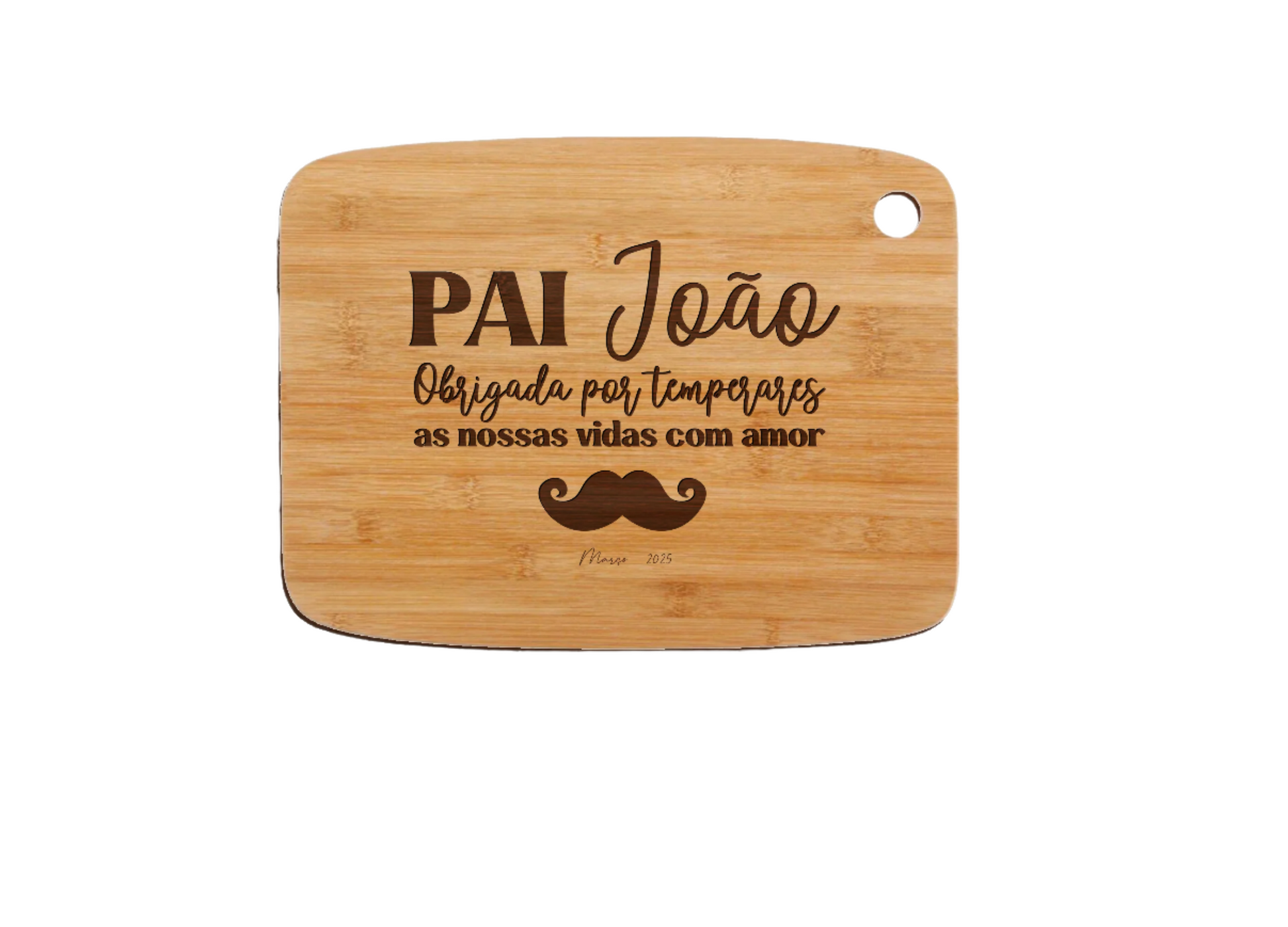 Personaliza a tábua com o nome do do pai que adora cozinhar. Um toque único para a cozinha que homenageia aquele que traz sabor à nossa vida!